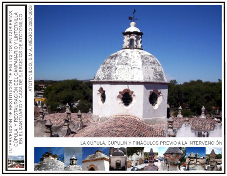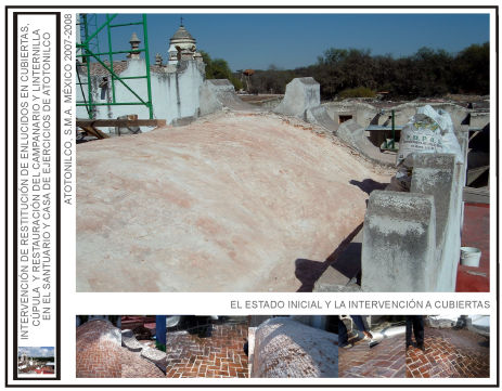 Intervención de restitución de enlucidos en cubiertas de nave principal, naves laterales y cúpula y restauración de linternilla y torre campanario del Santuario de Atotonilco y Casa de Ejercicios en el municipio de San Miguel de Allende, Gto. (primera etapa y segunda etapa).