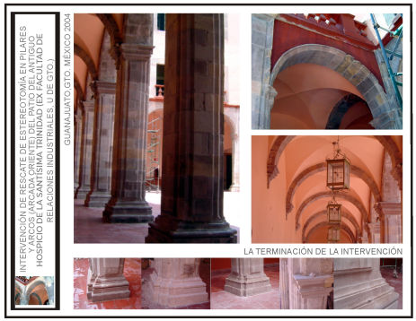 Rescate de etereotomía, consolidación de pilares, arcos y bóvedas de la arcada del patio del hospicio de la Santísima Trinidad (Ex Facultad de Relaciones Industriales, U. de G.), lado oriente en la ciudad de Guanajuato, Gto.