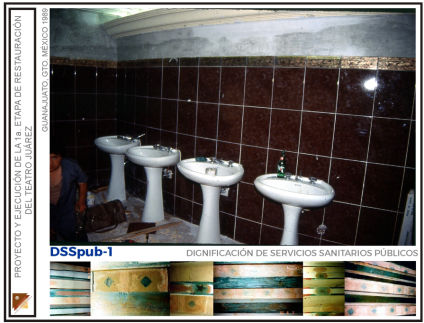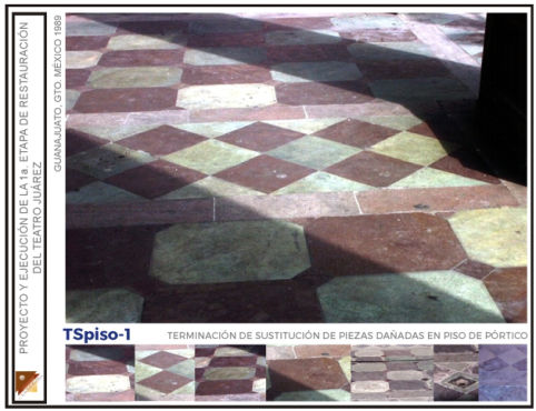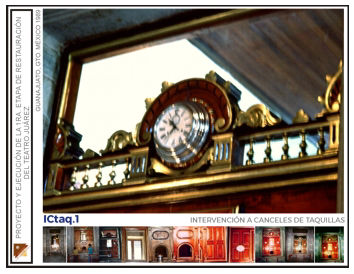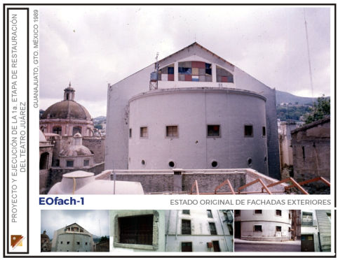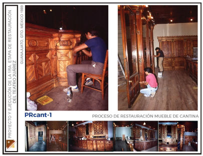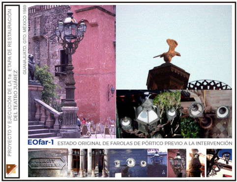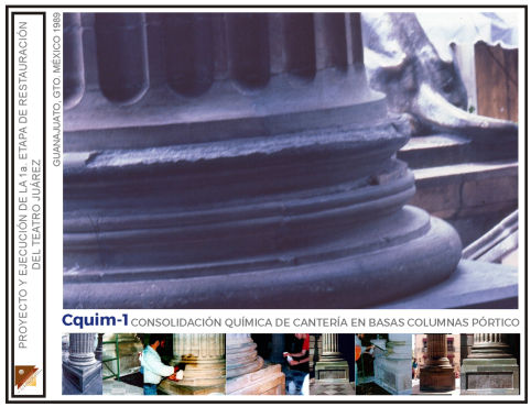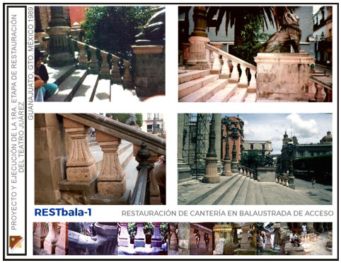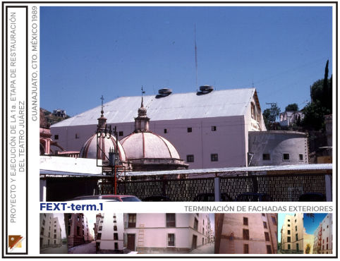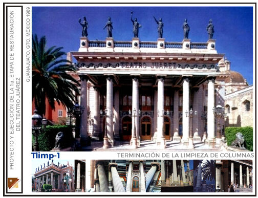 Consistente en reposición de cantería dañada en balaustres y pisos columnas, restauración de farolas restitución de herrería perdida, restitución de cubierta en cúpula de foyer, aplanados y pintura exterior, instalación de sistema contra incendios, rehabilitación de servicios sanitarios; intervenciones de carpintería exterior y rehabilitación de bombillas en pasillos y candil principal, en el Teatro Juárez de la ciudad de Guanajuato, Gto. (primera etapa)