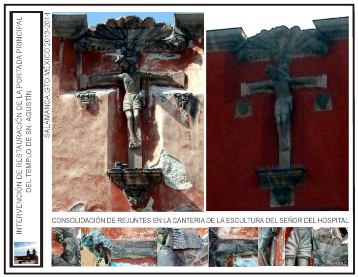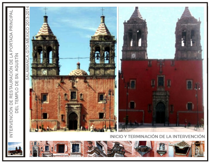 Intervención de restauración de la portada principal del templo de “San Agustín” y la reposición de aplanados y pintura de su fachada oriente en la ciudad de Salamanca, Gto.